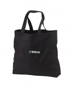 10 Oz., 100% cotton twill with cotton web handles. Approx. 588 cubic inches. Complies with Prop 65. 14" W x 14" H x 3" D